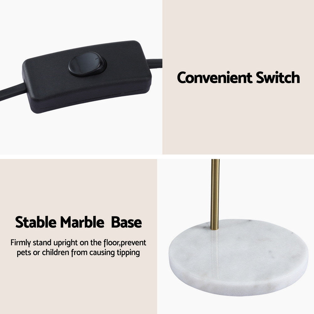 Artiss Modern Arched Floor Lamp Gold Brass Standing Heavy-Duty Marble Base for Living Room Bedroom
