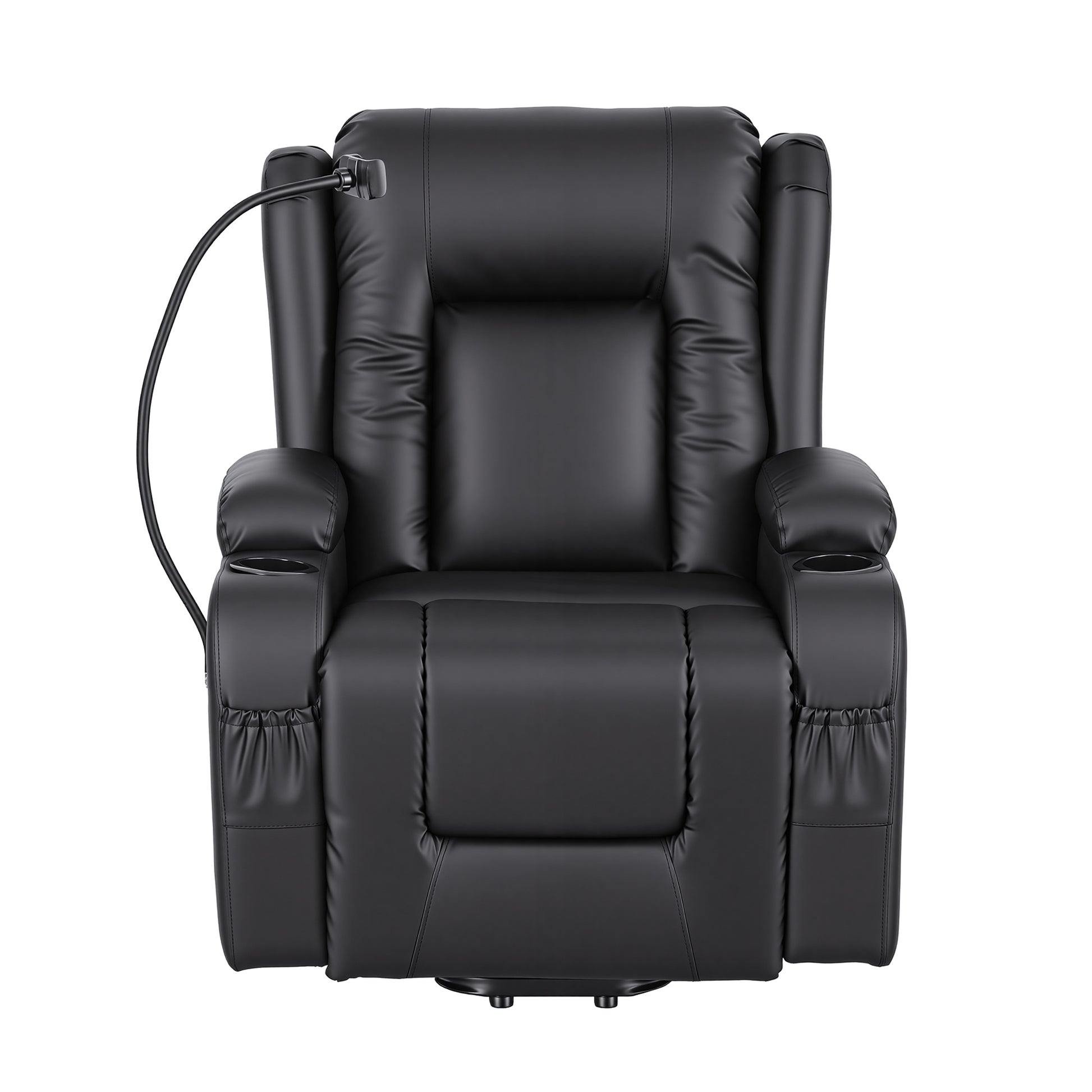 Artiss Power Lift Recliner Chair with Massage and Heat for Elderly, Electric Sofa Reclining Chair with USB and Phone Holder, PU Leather Comfy Armchair for Living Room, 2 Cup Holder & 4 Pockets, Black