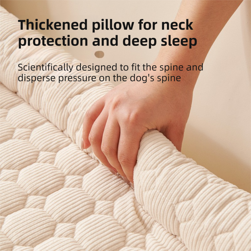 - 3-Sided Ergonomic Bolster: The raised, thickened edges act as a built-in pillow, providing cervical support and a sense of security for anxious pets.