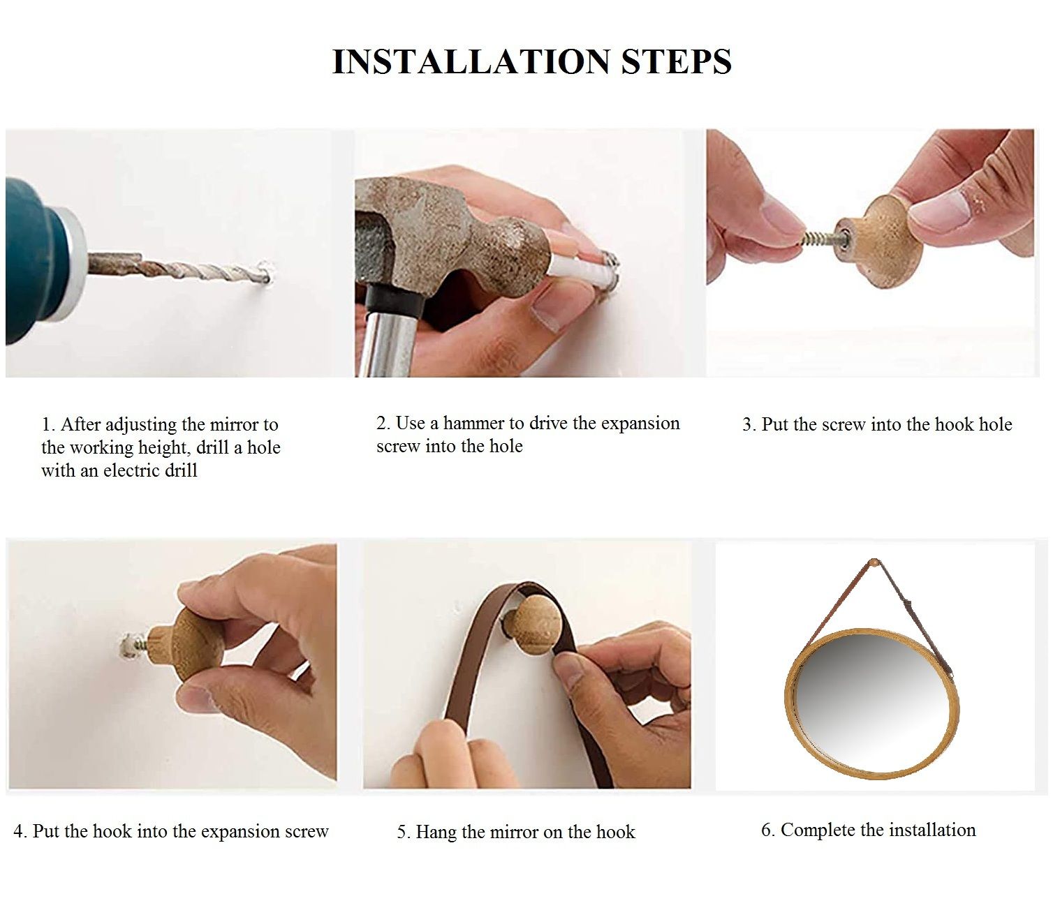 ADJUSTABLE LEATHER STRAP: The artificial leather strap of the circle mirror is adjustable, convenient to adjust the mirror to a suitable level to anyone.