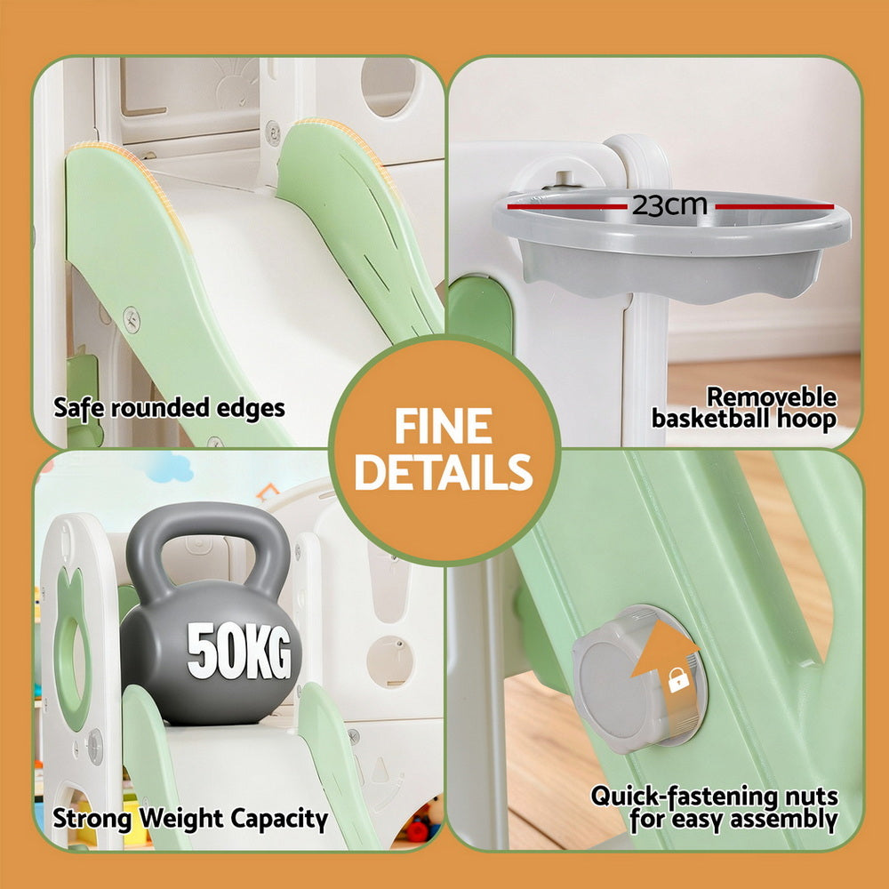Keezi Kids Slide Swing Set Ball Hoop Rings Football Outdoor Toys Green